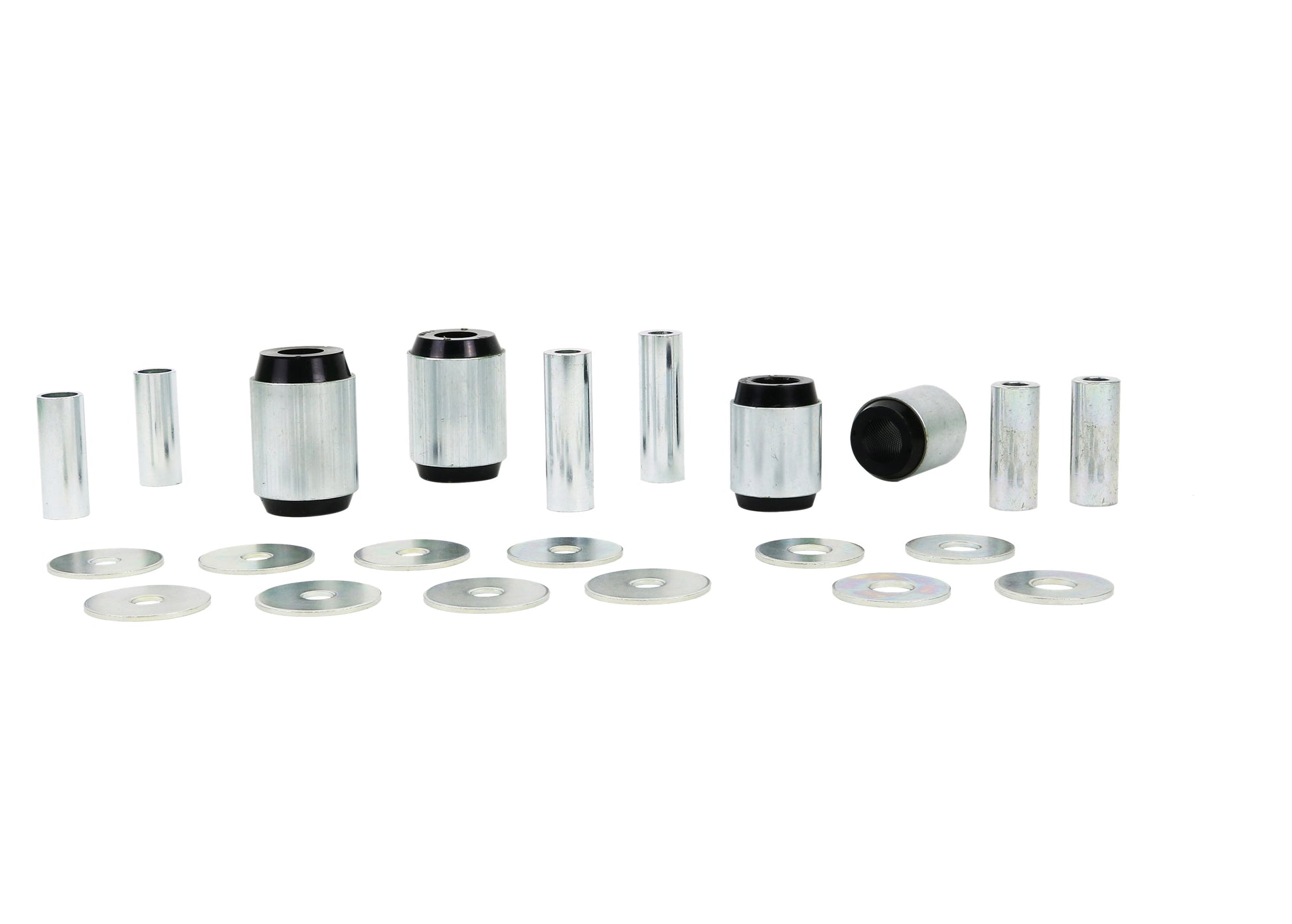 Includes forward and rearward inner bushings. Bushings feature OE style washers and integrated metal shell. OE shells are removed and discarded.