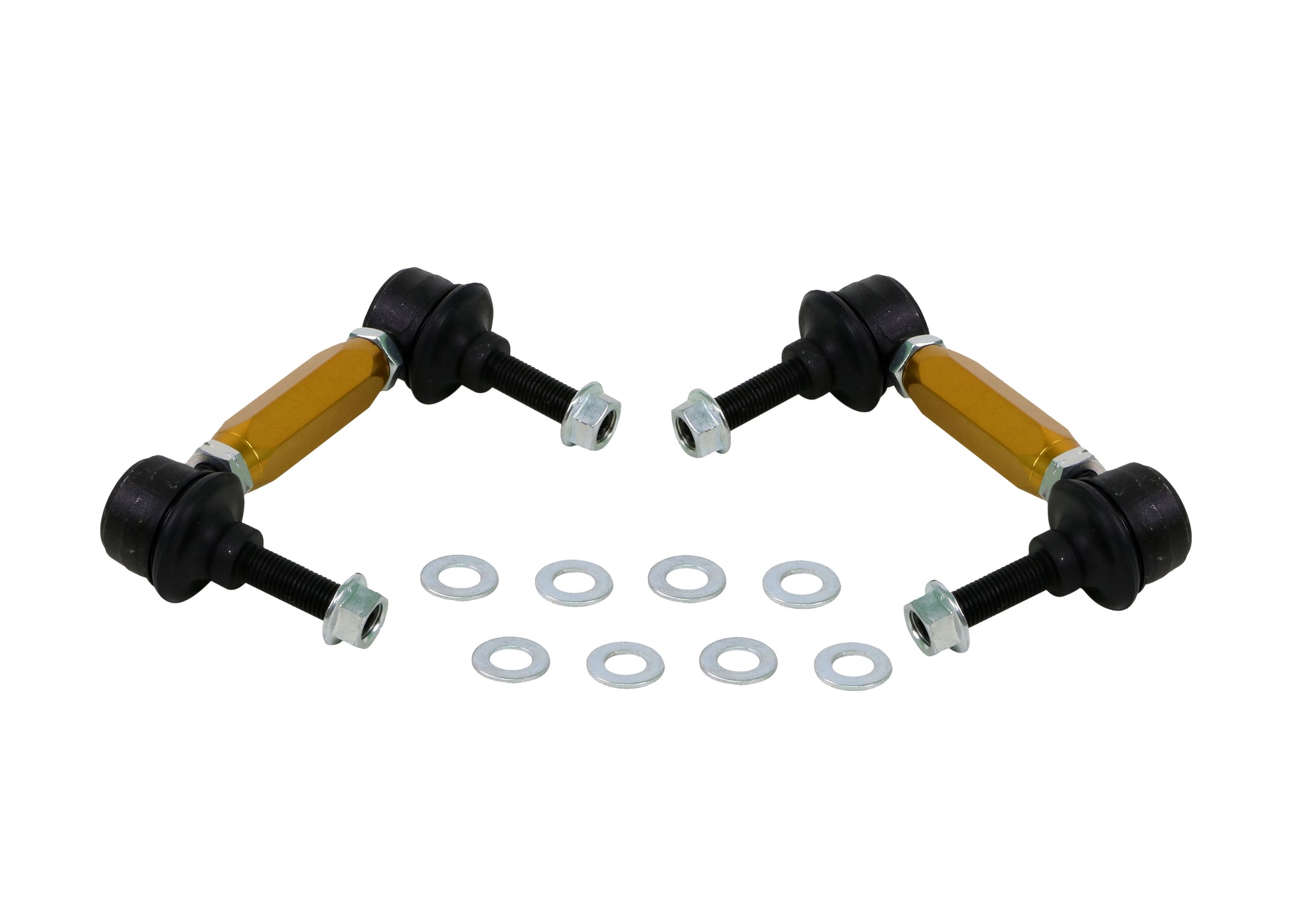The ideal upgrade for adjustable sway bars—or a simple way to unlock more from your OEM setup. Our front and rear adjustable sway bar links help fine-tune sway bar geometry for sharper steering, reduced body roll, and improved overall handling. Built from high-strength, corrosion-resistant materials, they deliver lasting performance while blending seamlessly with factory or aftermarket suspension.