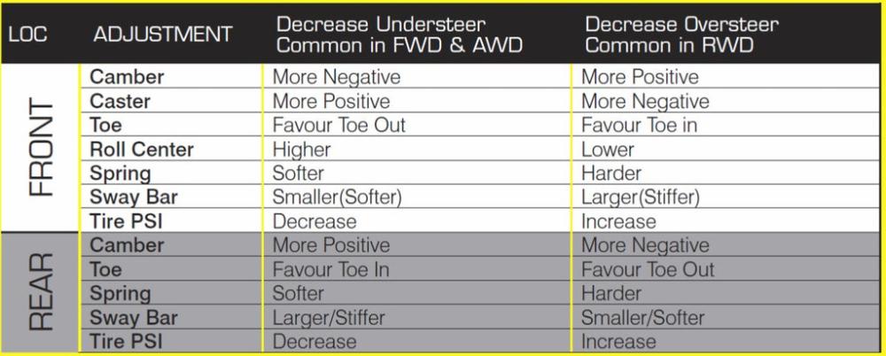 Whiteline develops a range of product to alter the handling bias (oversteer and understeer) of your vehicle for improved grip, including sway bars, lowering springs, camber bolt kits, roll center adjusters and more. Here is a simple snapshot of the varying ways one can reduce oversteer and understeer.